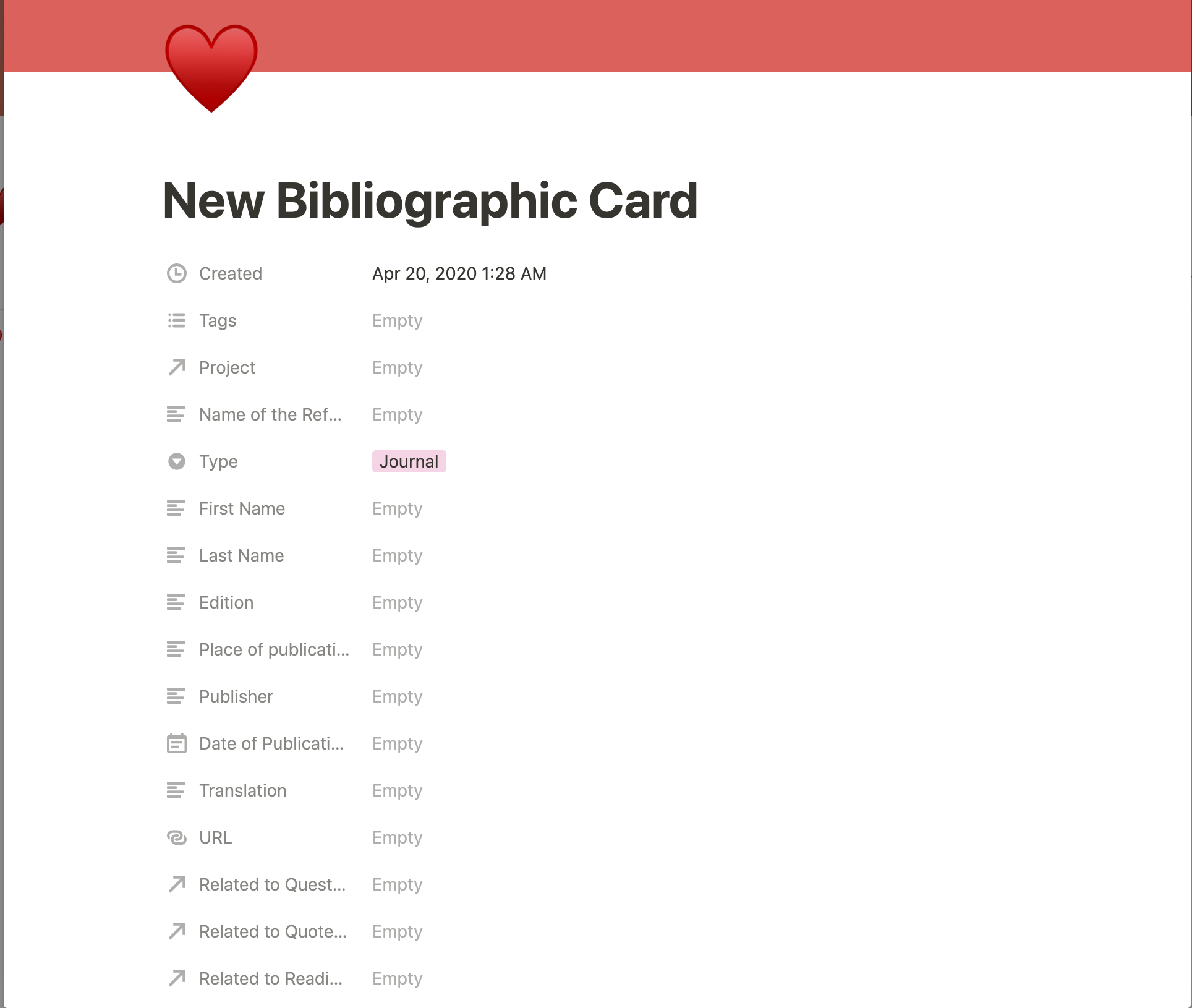 I am always on the lookout for interesting ideas about organizing information, so I decided to replicate Eco’s system using my tool of choice these days - Notion.