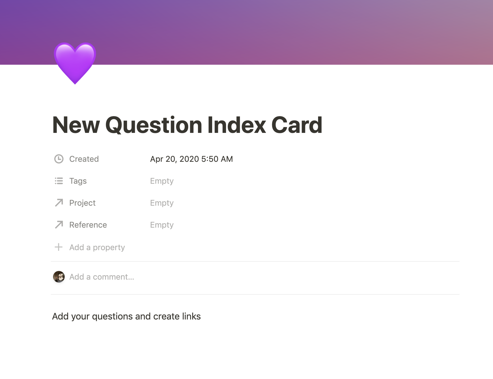 You will have questions in your research. One of the researches have all the outline headings framed as questions. When I created my template from the Questions Index Card, I kept the layout simple. I want this page to grow over time.Here's a new comic about asking questions: http://t.co/0HHT7zwK1s pic.twitter.com/BgJ0Xt29vw