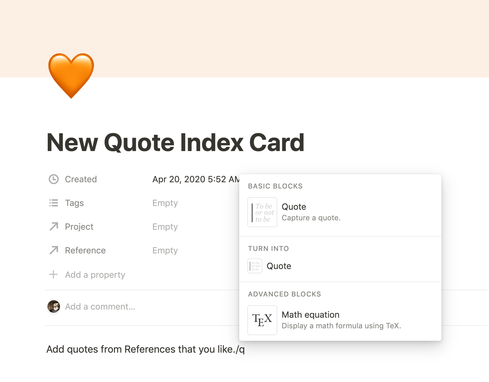 As I mentioned before, I like to read books on Kindle and Apple iBooks. Both pf these applications have highlighting feature. I like to highlight quotes and insights. If there was a way to export them to the Quotes cards, then it would be awesome. I am aware of the Github code, https://github.com/yannick-cw/notionfy which is a step in the right direction.