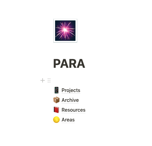 Notion has the facility to set up databases and pages. Think of databases as lists and pages as the container which house databases, raw text, notes etc. First off, for PARA setup we will need four pages - “Projects”, “Archive”, “Resources”, “Areas”
